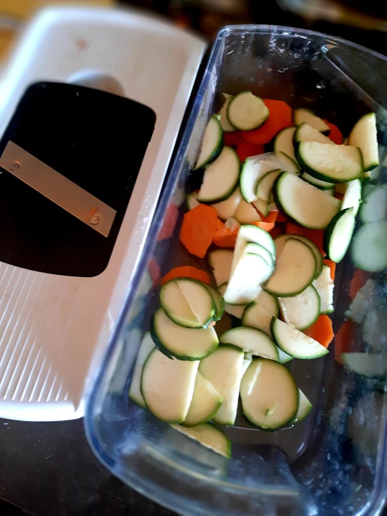 I have two favourite kitchen tools since I woke up disabled, and the mandolin is one of them. Next up, I’ll share my other favourite kitchen thing. Between the two, I’m back to being a fully functional cook!